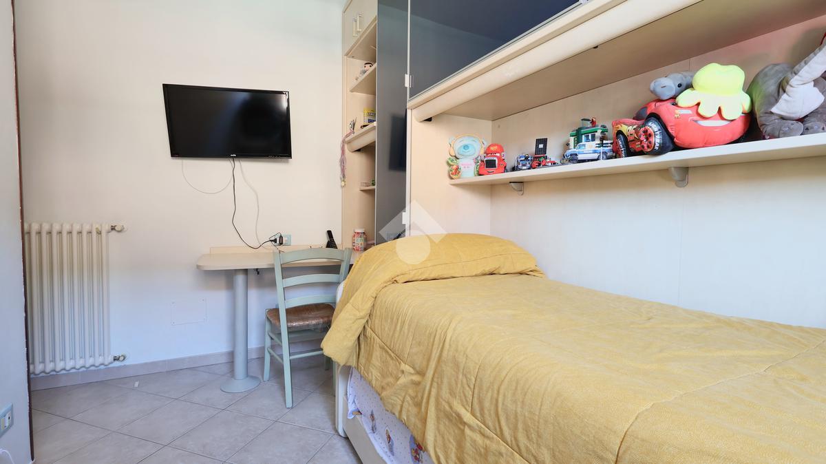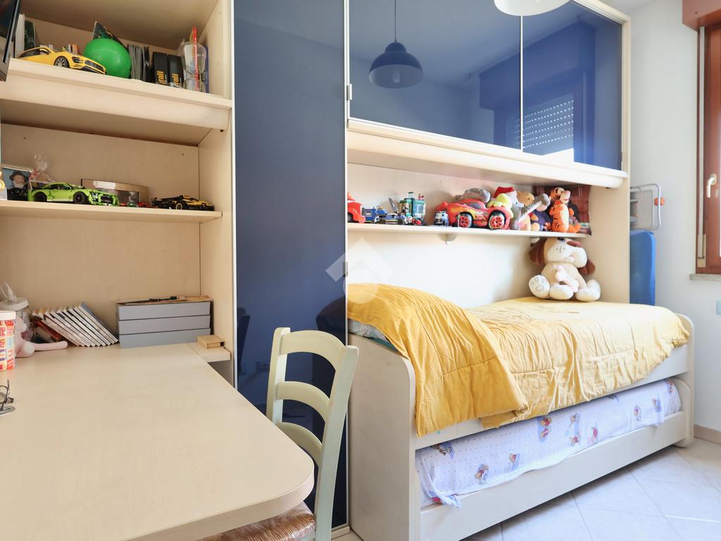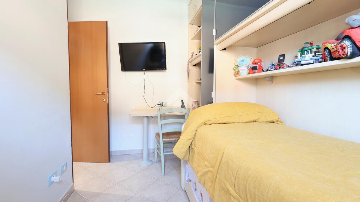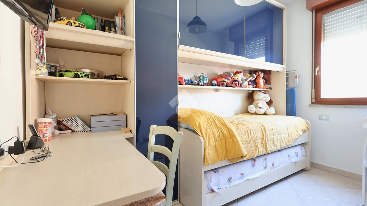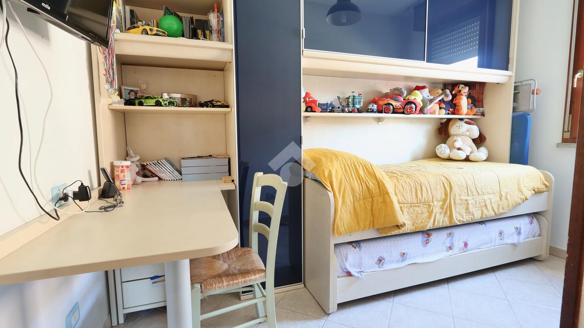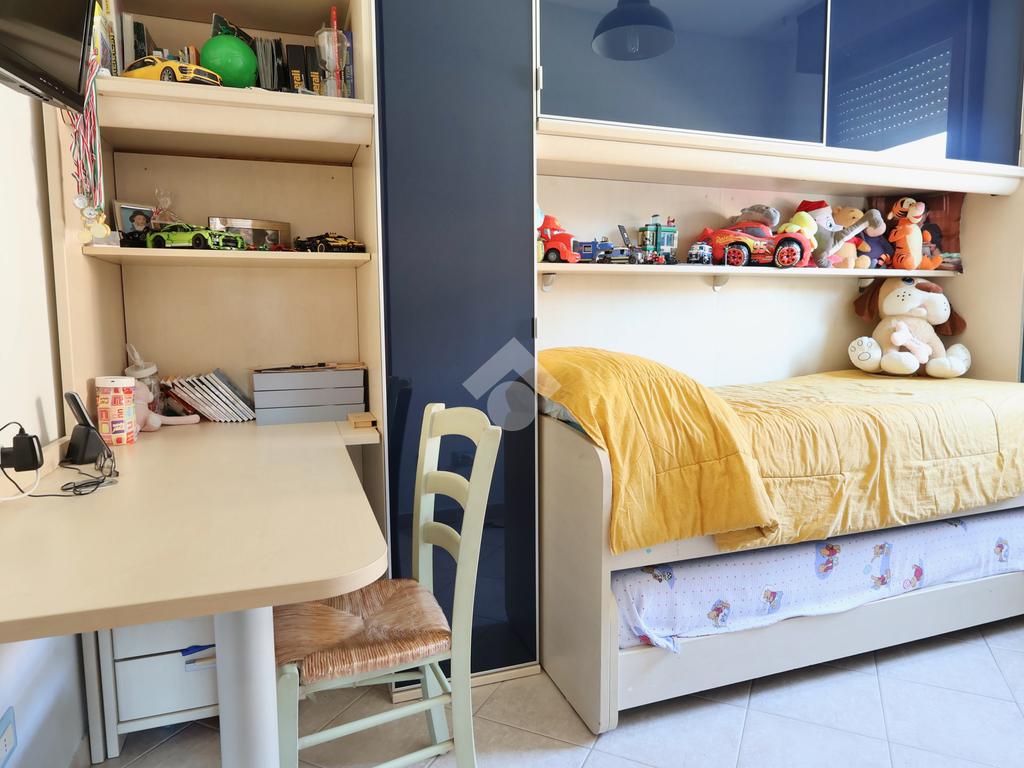 La zona notte comprende una spaziosa camera matrimoniale e una camera singola, ideali per famiglie o per chi desidera uno spazio aggiuntivo per studio o ospiti.